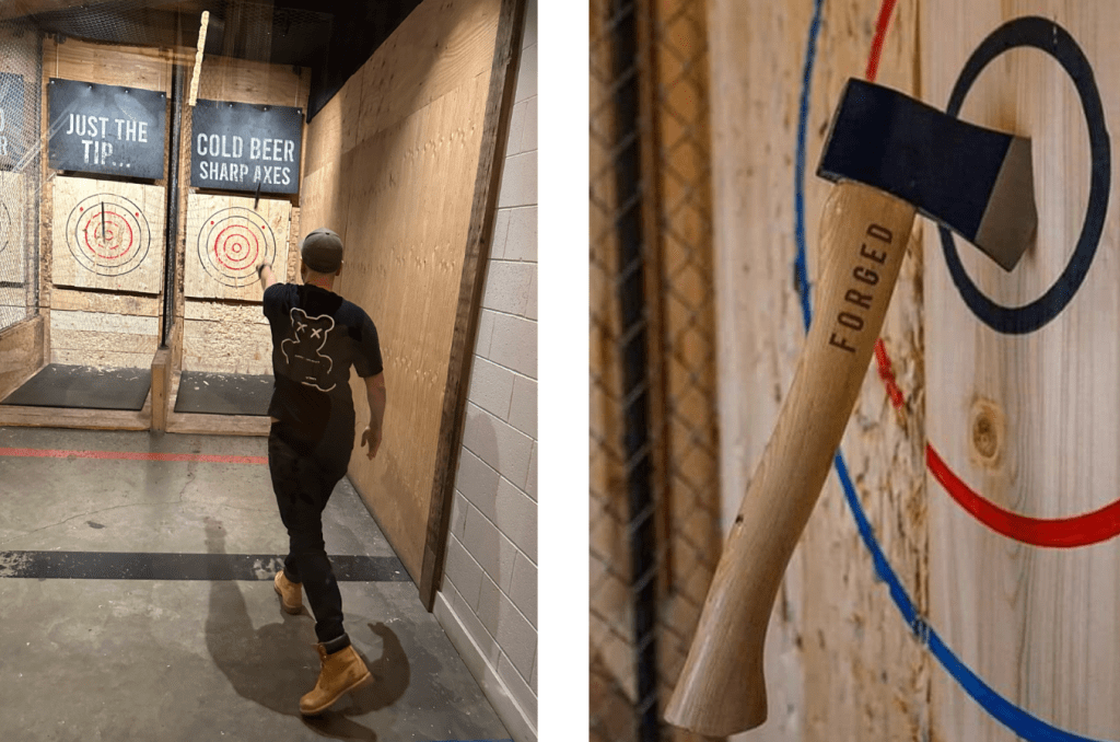 - Axe throwing: One of the coolest activities we did in Whistler was releasing our inner lumberjack at Forged Axe Throwing! This is for sure one of the most Canadian activities you can try! One session takes around an hour to do and you can book it anytime between 11am to 10pm, so it’s easy to slot into your Whistler itinerary.