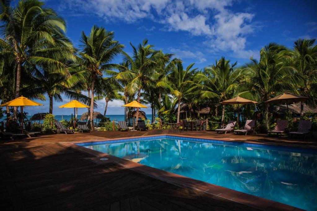 Nestled along the beachfront, Coconuts Beach Club Resort offers a delightful blend of relaxation and indulgence, boasting a restaurant, bar, and a refreshing outdoor pool, complemented by over-water fales for a unique stay experience.